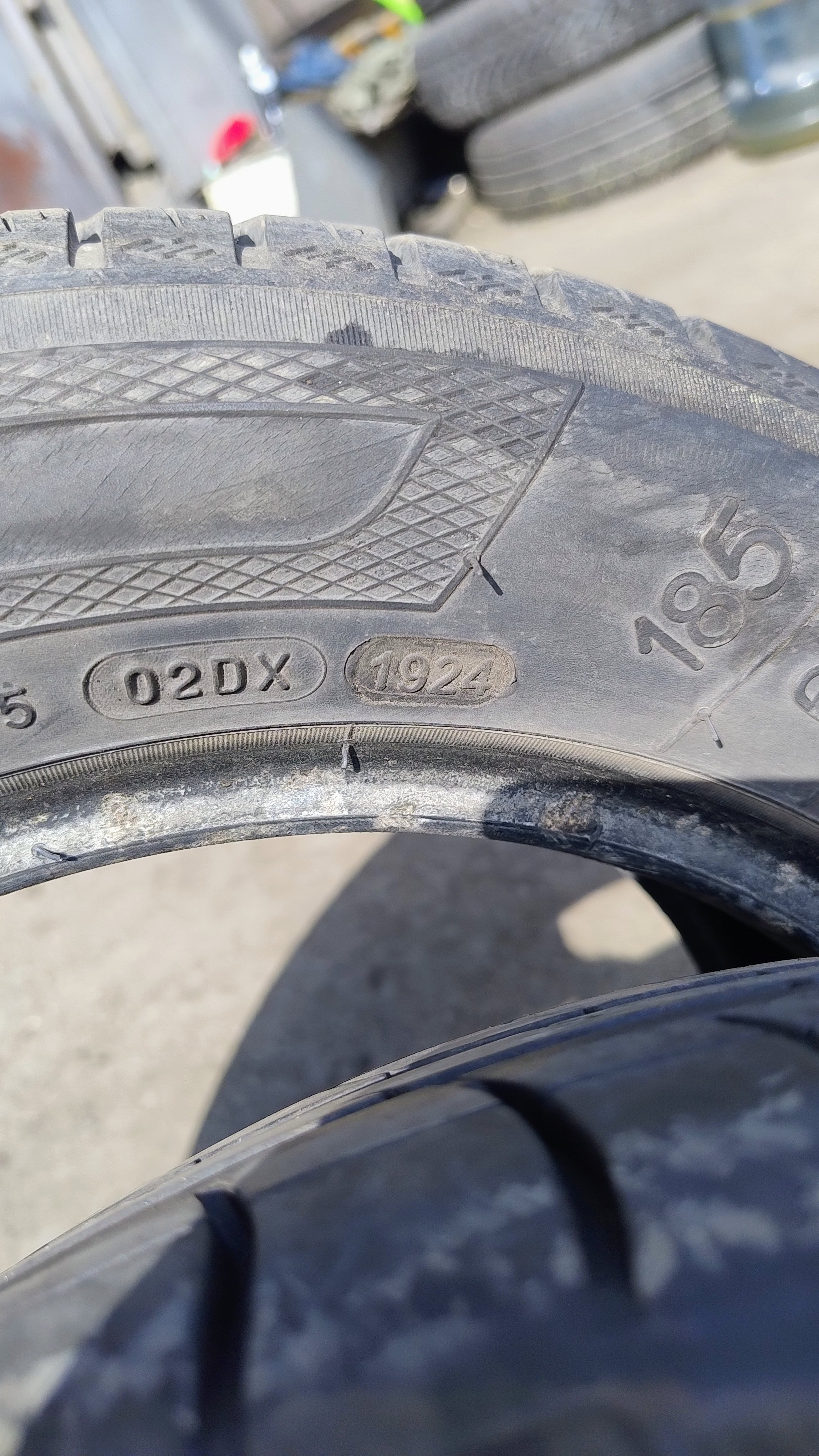 kvd74 683 #1 Публикувано преди 3 часа Привет. Днес ходих до София за едни покупки и м/у другото погледнах и едни гуми втора ръка. Марката Вредещайн, плюс още едни, дота 2024г., уж бива. Но състоянието не отговаря на годината. Освен понапукани бяха и пръснати с някаква боя, която се лющеше на тънки ципи. Нещо се усъмних в ЕГН-то им и май дота е пренабиван. Бях го чел това някъде, но не го очаквах на живо и то за 14 цола гуми. Снимах ги и се вижда как овала, където са четирите цифри, се дублира с такъв с по-голям размер. Знам, че по-хубаво от нови гуми няма. Сподели публикацията Адрес на коментара Сподели в други сайтове